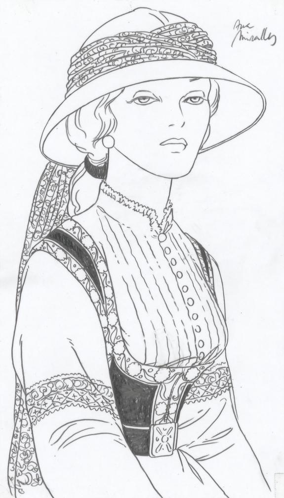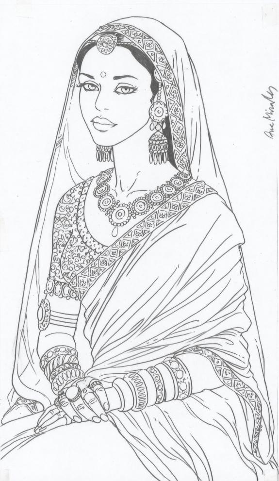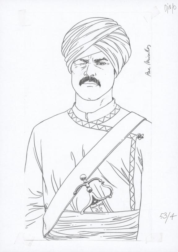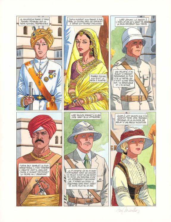 > Catalogue > Ana Miralles > Djinn > Le Pavillon des plaisirs > Planche originale n°53 accompagnée de ses 6 étapes préparatoires à la mine de plomb sur calque