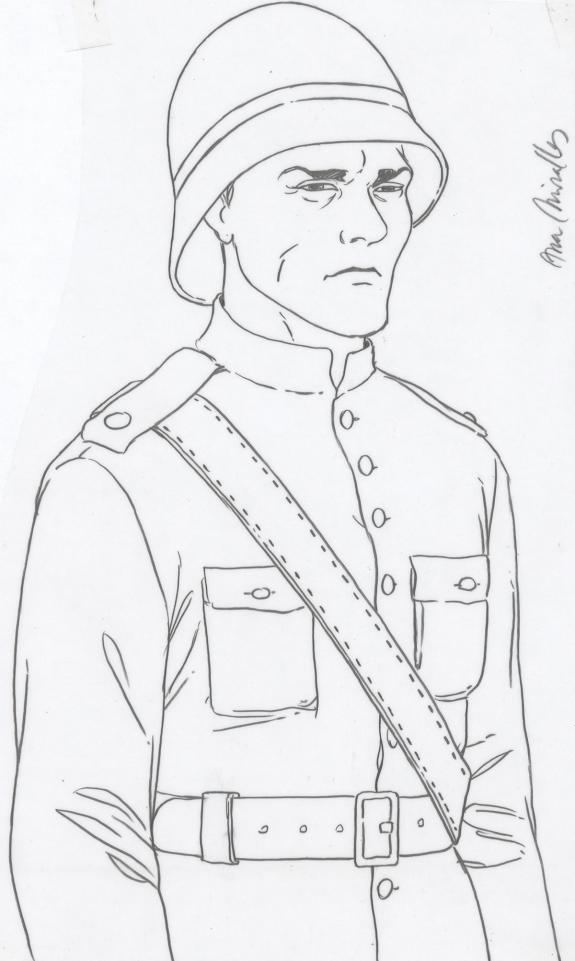 Planche originale n°53 accompagnée de ses 6 étapes préparatoires à la mine de plomb sur calque