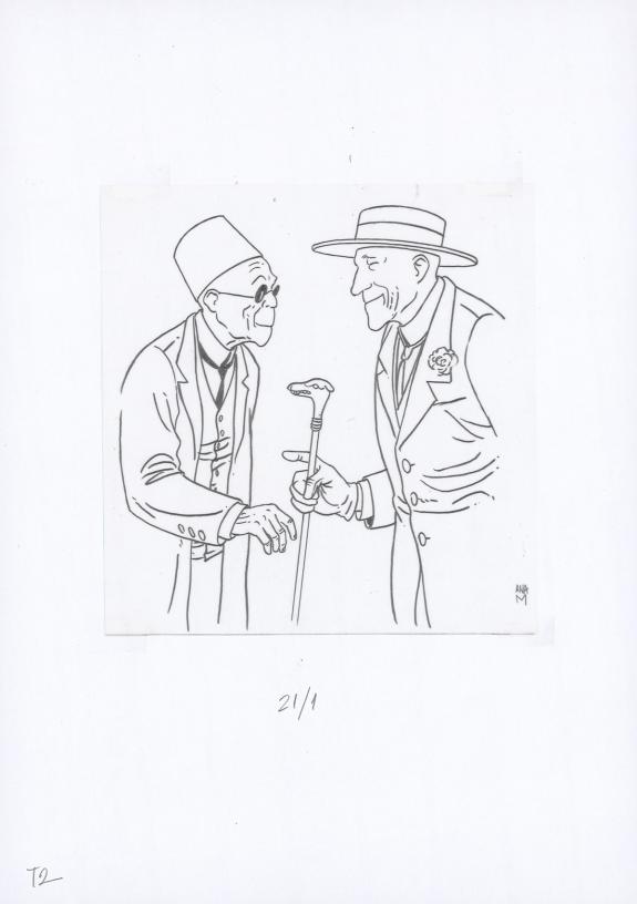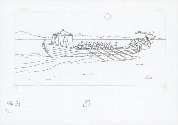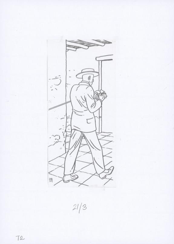 Planche originale n°21 accompagnée de ses 6 étapes préparatoires à la mine de plomb sur calque