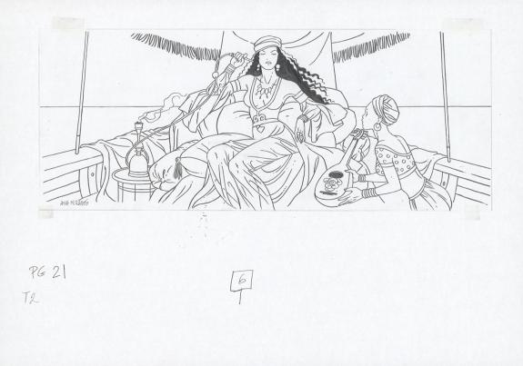 > Catalogue > Ana Miralles > Djinn > Les 30 clochettes > Planche originale n°21 accompagnée de ses 6 étapes préparatoires à la mine de plomb sur calque