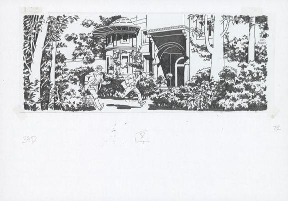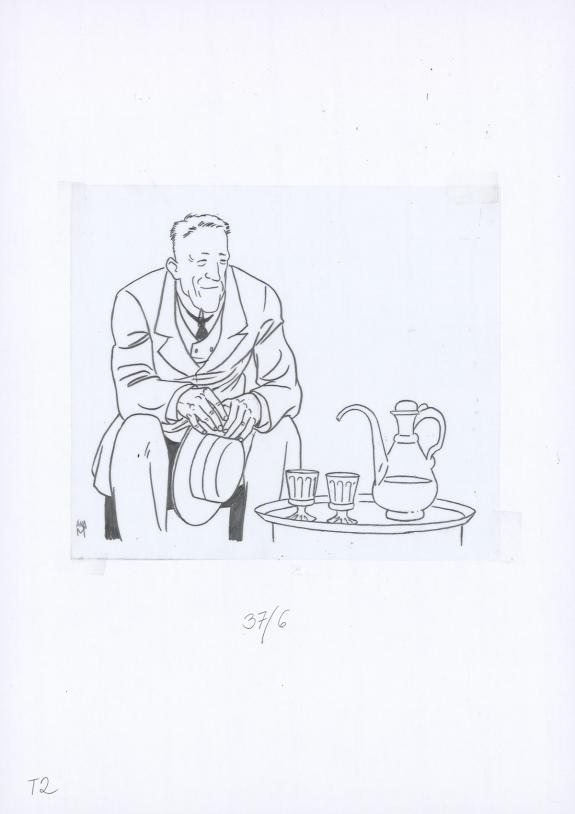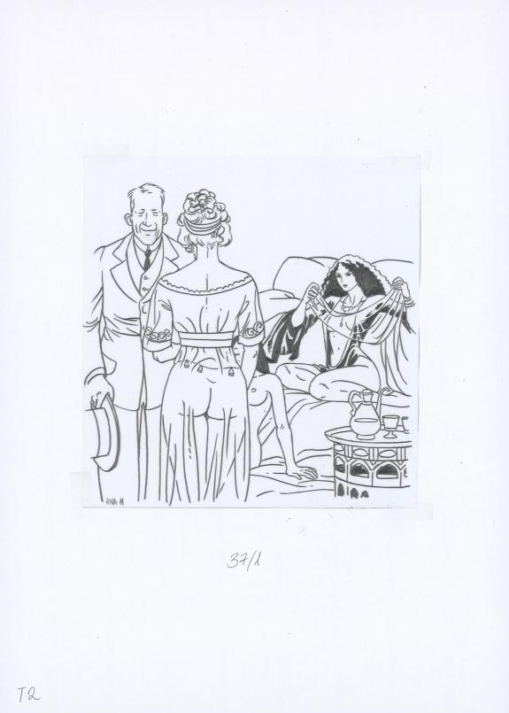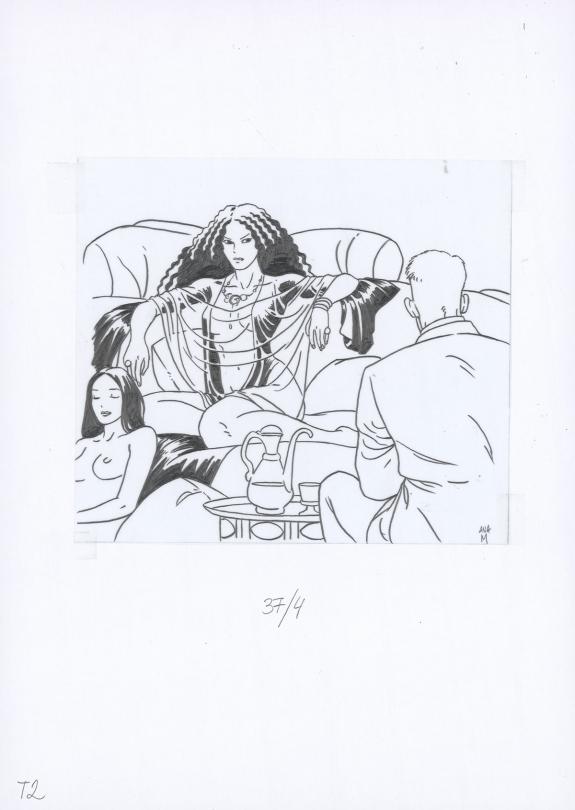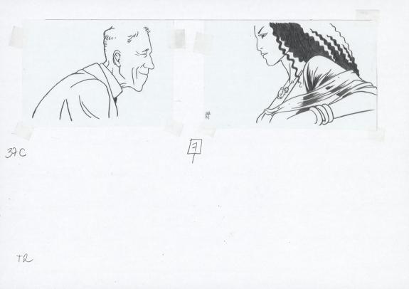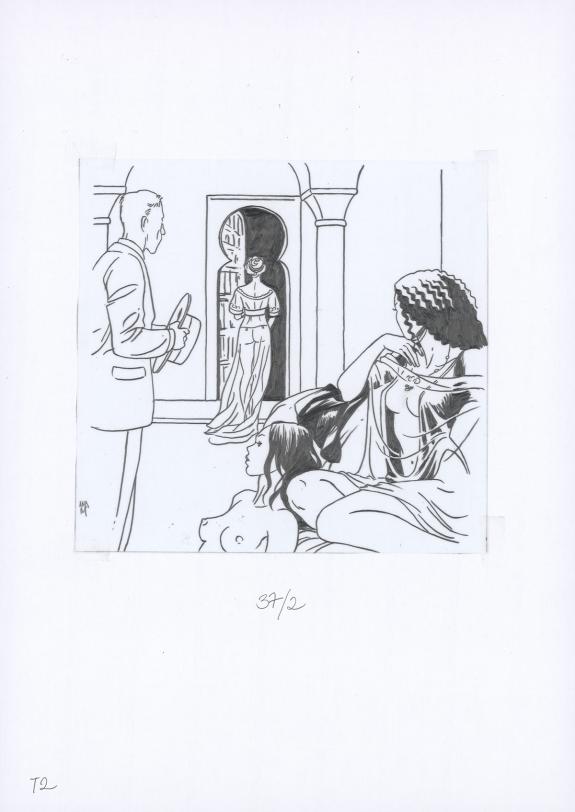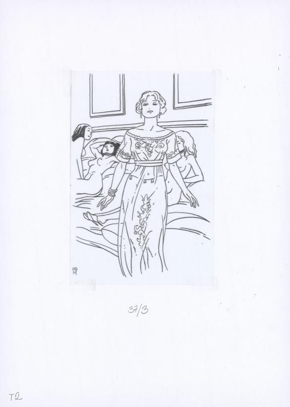 Planche originale n°37 accompagnée de ses 8 étapes préparatoires à la mine de plomb sur calque