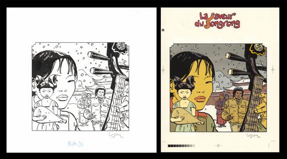 > Catalogue > Cosey > Jonathan > La Saveur du Songrong > Couverture originale accompagnée de sa mise en couleur à la gouache sur papier