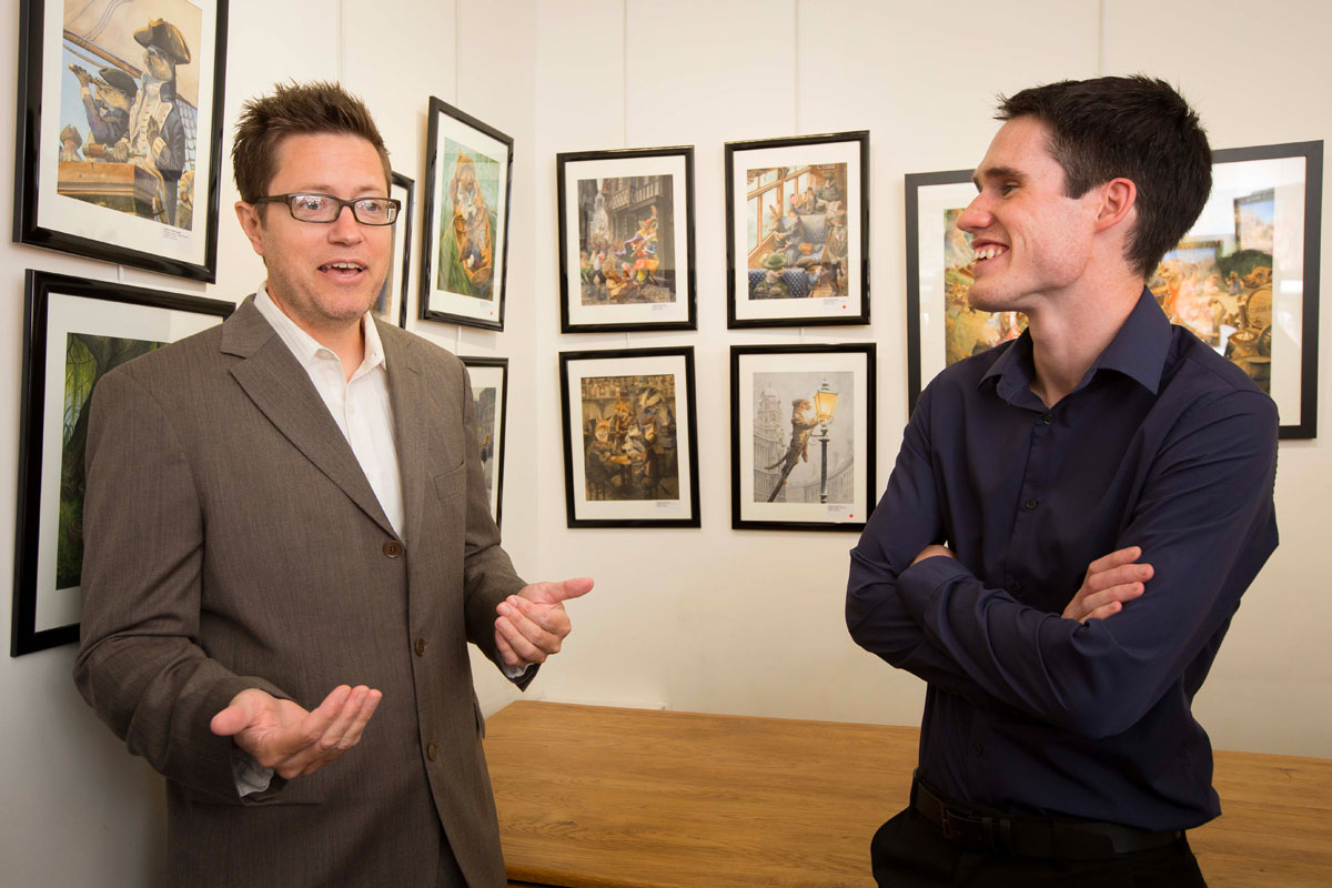 Jeune artiste britannique et aquarelliste hors-pair, Christopher Dunn dépeint avec finesse et poésie des scènes de la vie quotidienne où les animaux pastichent les comportements humains. Inspiré par l’univers de Beatrix Potter et John Howe, il donne vie à un monde fabuleux foisonnant de détails cocasses et humoristiques.