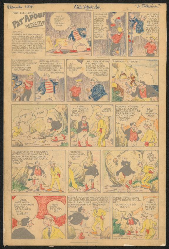 > Catalogue > Gervy > Pat'Apouf > Les Aventures de Pat'Apouf aux Antipodes > Planche originale n°156 accompagnée de son calque de couleurs