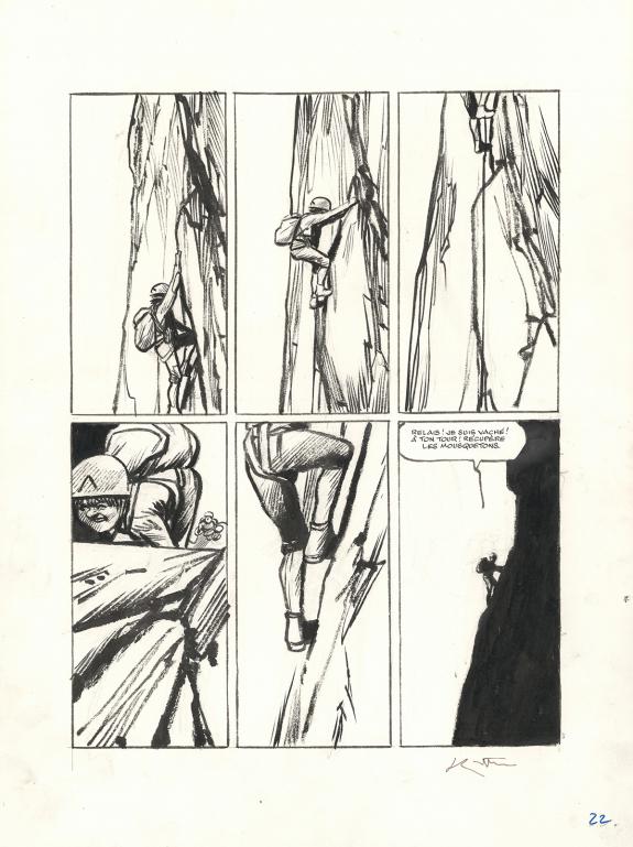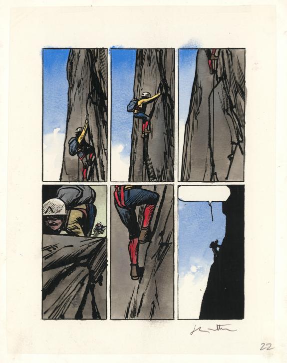 > Catalogue > Jean-Marc Rochette > Album(s) sans série > Ailefroide, altitude 3954 > Planche originale n° 022 accompagnée d'un bleu de mise en couleurs