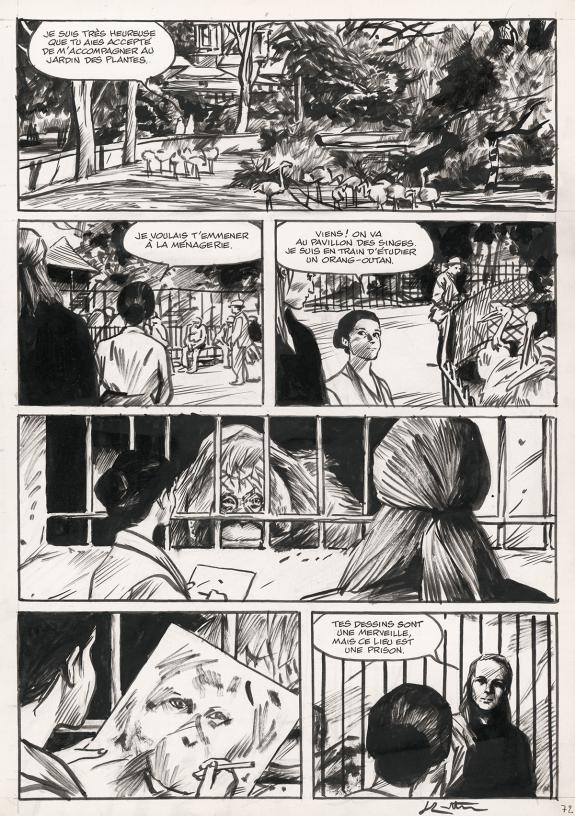 > Catalogue > Jean-Marc Rochette > Album(s) sans série > La Dernière Reine > Planche originale n°072 accompagnée de sa première étape à l'encre de Chine et au lavis
