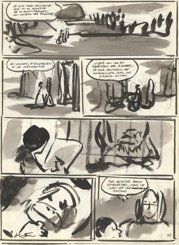 Planche originale n°072 accompagnée de sa première étape à l'encre de Chine et au lavis