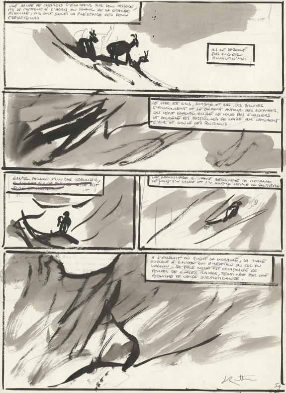> Catalogue > Jean-Marc Rochette > Album(s) sans série > Le Loup > Planche originale n°54 accompagnée de sa première étape au lavis