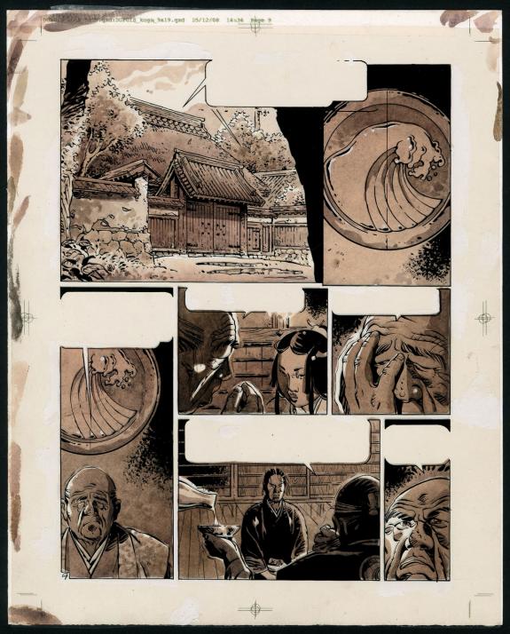 > Catalogue > Marc Michetz > Kogaratsu > La Stratégie des phalènes > Planche originale n°17 ccompagnée de son bleu de mise en couleur